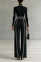 Meridress Color Block High Neck Long Sleeves Top High Rise Wide Leg Pants Set
