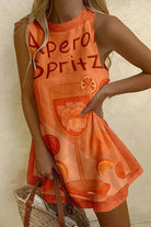 Meridress Sleeveless Aperol Spritz Print Mini Dress