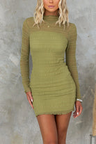 Long Sleeves Ruched Sheer Bodycon Mini Dress