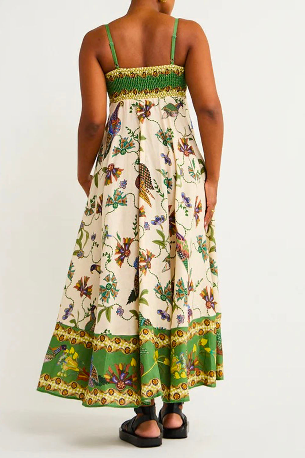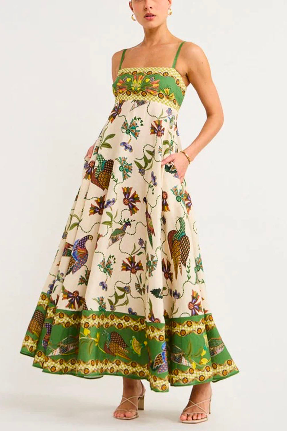Unique Birdie Print Pocketed Swing Maxi Dress