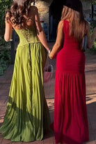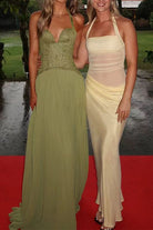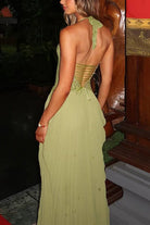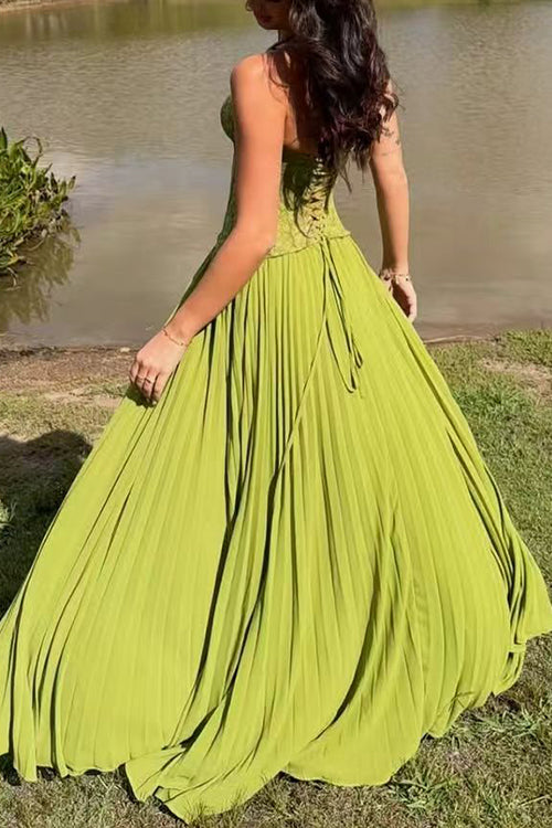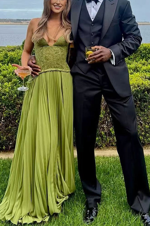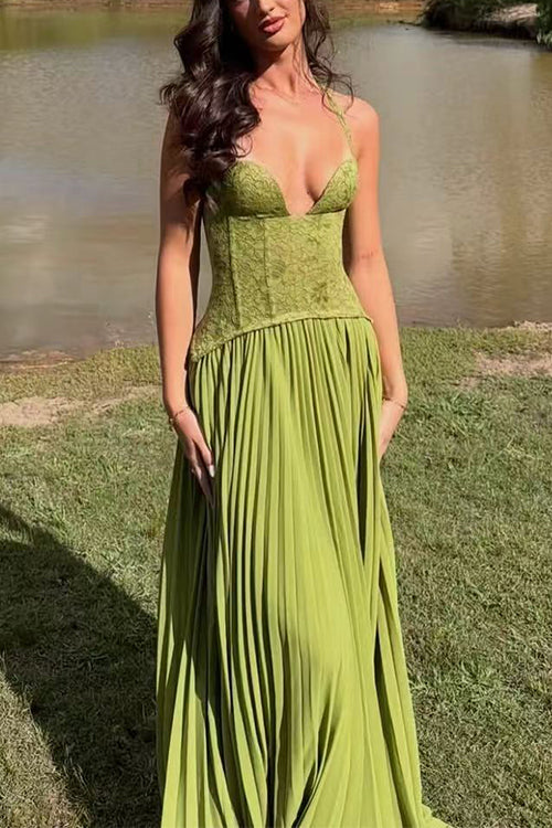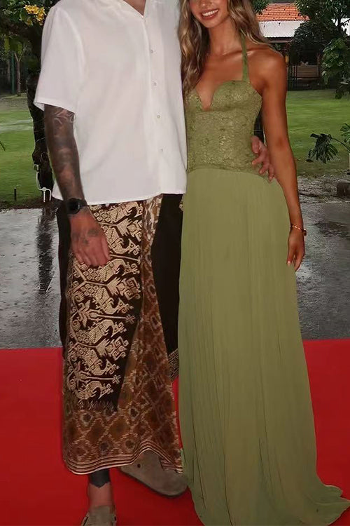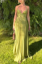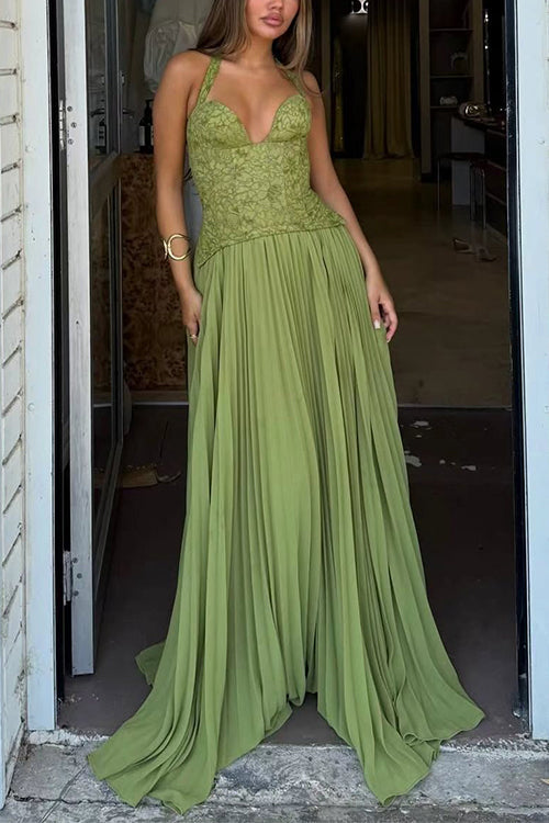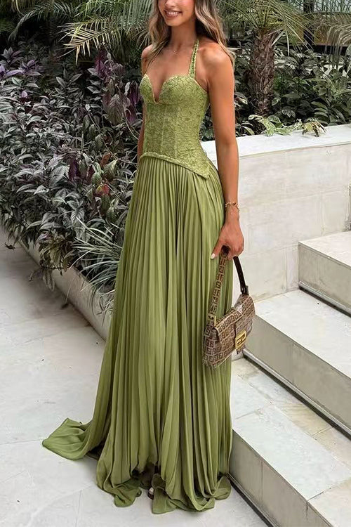 Meridress Halter Neck Back Lace-up Pleated Maxi Dress