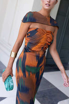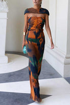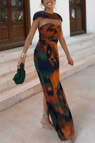 Make a bold statement in this captivating strapless maxi dress designed for those who dare to stand out. The strategic cut-out at the waist accentuates your curves while the flowing back slit ensures graceful movement with every stride. Eye-catching printed details add visual interest and personality to your wardrobe. Perfect for formal events, weddings, or upscale celebrations, this dress combines contemporary design with timeless elegance. The strapless silhouette offers versatility for styling with jewelry and accessories, while the maxi length provides sophistication and coverage. Invest in a piece that transforms any occasion into an unforgettable moment.