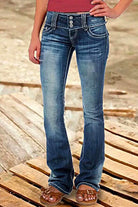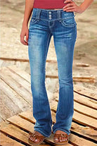 Meridress Button Down Bell Bottom Jeans with Pockets