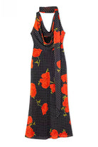 Meridress Cowl Neck Backless Floral Print Maxi Dress with Scarf