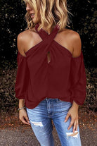 Meridress Criss Cross Halter Solid Long Sleeve Top