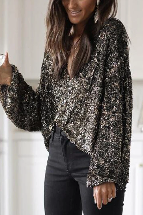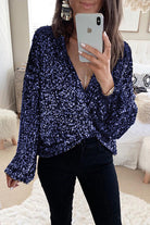 Meridress Deep V-Neck Wrap Front Sequin Top
