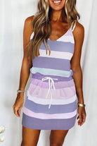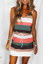 Meridress Drawstring Waist Tie Shoulder Stripes Color Block Cami Dress