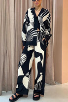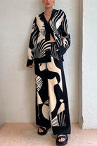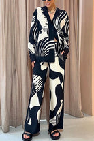Meridress Graphic Printed Long Sleeve Blouse Shirt Wide Leg Pants 2 Pieces Set