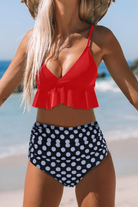 Meridress V Neck Flouncing Design Print Two-piece Swimwear