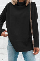 Meridress Janice Turtleneck Side Split Long Sleeve Top