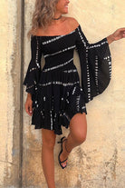 Meridress Off Shoulder Bell Sleeve Tie Dye Mini Dress
