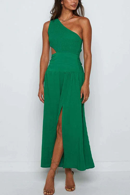 Meridress One Shoulder Sleeveless Cut Out Slit Beach Dress