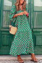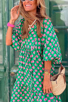 Meridress Puff Sleeve Geometry Printed Swing Dress