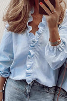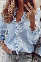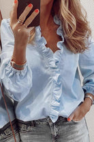 Meridress Scallop Deep V Neck Long Sleeve Shirt