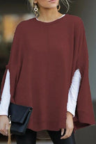 Meridress Solid Crewneck Batwing Sleeve Cloak Pullovers
