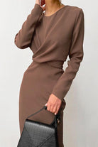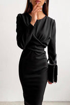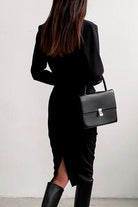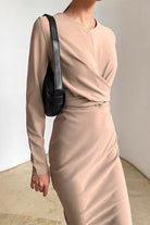 Meridress Solid Front Cross Slit Back Ruched Midi Dress