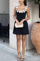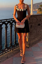 Meridress Strappy Floral Neckline Sleeveless Mini Dress
