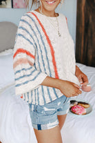 Meridress Striped Color Block 3/4 Sleeve Pullover Sweater