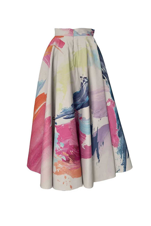High Rise Pocketed Picasso Canvas Maxi Skirt