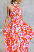 Halter Backless Waisted Floral Print Swing Maxi Dress