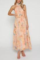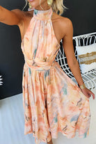 Halter Bow Neck Backless Beck Print Swing Maxi Dress