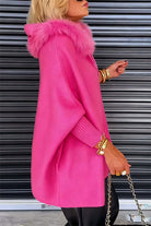 Meridress Dolman Sleeves Zipper Up Pocketed Jacket with Faux Fur Hood