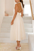 Meridress Halter Open Back Waisted Tulle Midi Dress