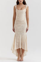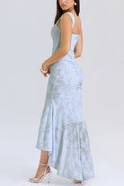 Meridress Sleeveless Ruched Waist Ruffle Hem Jacquard Maxi Dress