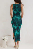 Meridress Sleeveless Side Slit Printed Bodycon Midi Dress