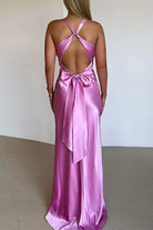 Meridress V Neck Back Tie Bow Cut Out Satin Maxi Dress