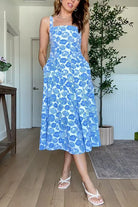 Effortless elegance meets everyday practicality in this square neck sleeveless midi dress. The charming shell print adds visual interest, while functional pockets keep your essentials close. Crafted from a comfortable cotton-polyester blend, this versatile piece transitions seamlessly from casual outings to relaxed gatherings. The midi length and sleeveless silhouette offer a flattering, modern look that works year-round.