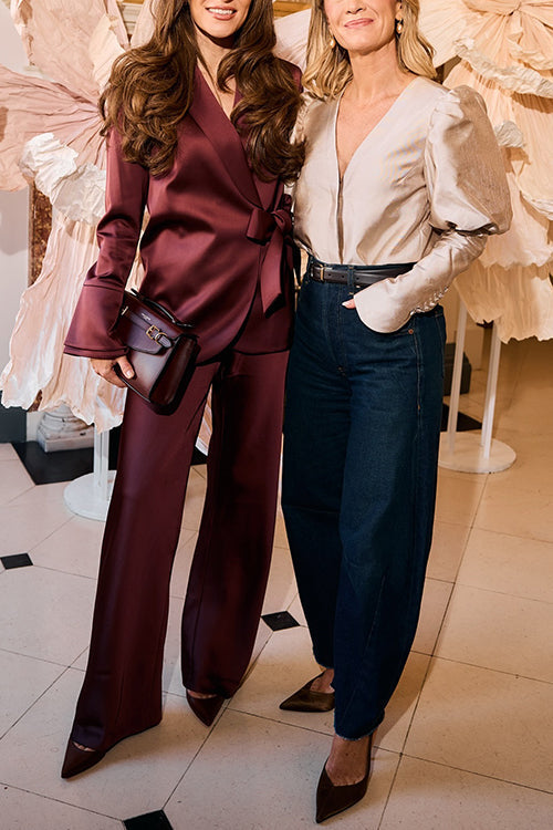 Experience effortless elegance with these High Waist Straight Leg Satin Pants. Crafted from luxurious satin fabric, they offer a sophisticated sheen that catches the light beautifully. The high-waisted design flatters your figure while the straight-leg silhouette provides a sleek, modern aesthetic. Whether you're heading to the office, a dinner date, or weekend brunch, these pants deliver that coveted polished look. Invest in a piece that combines comfort with undeniable style¡ªyour go-to choice for looking put-together every time.