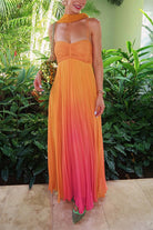 • Elevate your style with this Ruched Back Lace-up Gradient Pleated Maxi Cami Dress. Featuring a flattering ruched back and adjustable lace-up detail, it offers a perfect fit and elegant silhouette. The gradient pleated fabric adds a dynamic, flowing effect that moves beautifully with you. Ideal for special occasions or a chic evening out, this maxi dress combines comfort and sophistication effortlessly.