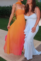 Ruched Back Lace-up Gradient Pleated Maxi Cami Dress