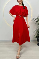 • Effortless elegance meets everyday comfort in this versatile midi dress. Featuring a classic crewneck, short sleeves, and a flattering belted waist, the subtle slit adds movement and sophistication. Crafted from a breathable cotton-polyester blend, it's perfect for casual outings, work, or weekend gatherings. The structured silhouette skims the body beautifully while the midi length offers timeless appeal.?