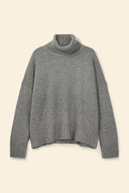Discover the perfect blend of comfort and style with this turtleneck sweater. Featuring a relaxed drop shoulder cut that offers an on-trend silhouette, this piece delivers effortless sophistication for any occasion. The ribbed hem provides structure and prevents stretching, keeping your sweater looking fresh wear after wear. Whether you're dressing up for brunch or keeping it casual at home, this versatile knit adapts to your lifestyle. The cozy turtleneck keeps you warm while maintaining a sleek appearance that works with virtually any outfit in your closet.